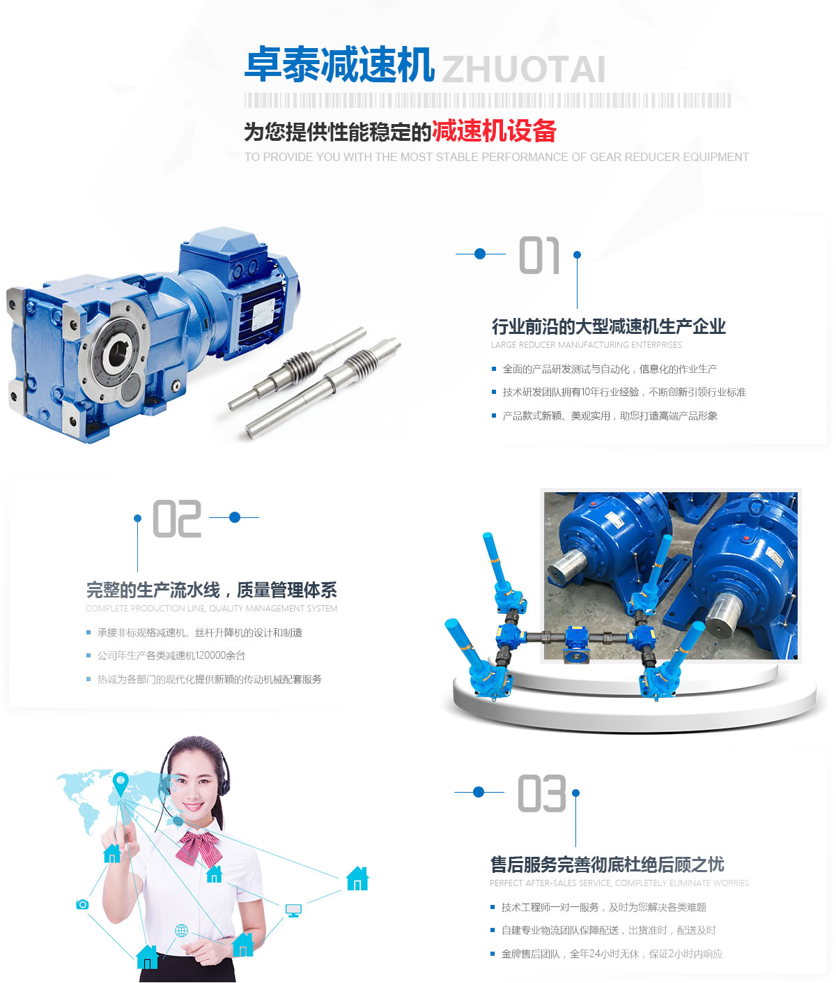 寰峰窞鍗撴嘲鍑忛熸満鏈夐檺鍏徃鏄崕鍖楀湴鍖虹殑鐢熶駭鍑忛熸満鐨勪笓涓氬叕鍙革紝浼佷笟鍗犲湴闈㈢Н涓や竾浣欏鉤鏂圭背錛屽凡鏈夎繎浜屽崄騫寸敓浜у埗閫犵粡楠屻備富瑕佺敓浜х粡钀ワ細(xì)WH銆丠W銆丆W銆丼CW銆乄S銆乄D銆乄XJ銆乄SJ緋誨垪鍦嗗姬榻匡紙鏅氾級鍦嗘煴铚楄疆铚楁潌鍑忛熸満錛汿PS銆乀PU銆乀PA緋誨垪騫抽潰浜屾鍖呯粶铚楄疆鍑忛熸満錛沊銆丅緋誨垪鎽嗙嚎閽堣疆鍑忛熸満錛汼WL緋誨垪铚楁潌涓濇潬鍗囬檷鏈猴紱澶у瀷鍠風(fēng)亴璁懼涓撶敤鍑忛熸満錛涚數(shù)鐐変笓鐢ㄥ噺閫熸満絳夈傝繕鍙壙鎺ュ悇縐嶉潪鏍囧噺閫熸満鍙?qiáng)閰嶄欢鐨勮璁″姞宸ャ傚崜娉版満姊板緇堝潥鎸佲滆川閲忕涓錛屽鎴蜂負(fù)鏈濈殑鎬濇兂銆備粠涓嶆澗鎳堝湪浜у搧璐ㄩ噺涓婄殑瑕佹眰錛屽浜庢瘡涓浠朵駭鍝侀兘緇忚繃璁ょ湡鐨勮川閲忔妸鍏籌紝紜繚瀹㈡埛鐨勬弧鎰忎綑璁ゅ彲銆備笉鏂姞澶у璐ㄩ噺鐨勬姇鍏ワ紝鏄痙宸炲崜娉板噺閫熸満鏈夐檺鍏徃鑾峰緱楂樿川閲忎駭鍝佺殑閲嶈淇濊瘉銆? 寰峰窞鍗撴嘲鍑忛熸満鏈夐檺鍏徃浠ョ敤蹇冪粡钀ャ佸畬緹庢妧鏈拰鏁笟綺劇錛岃嚧鍔涗簬涓烘?zhèn)ㄦ彁渚涚湡璇氭湇鍔″拰鏇村悎鐞嗙殑鏁村瑙e喯x柟妗?....